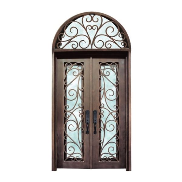 Finished Surface Luxury Entrence Door Wrought Iron Double Door With Transom For House Images |