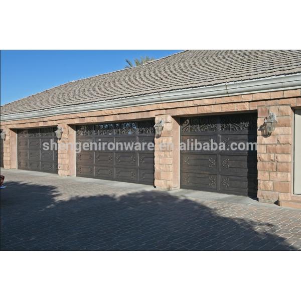 Garage door,is constructed by 6*2jamb,6*2door style and 5/8*5/8scroll work.You may rest assure that the materials we used will make sure the garage doors are strong and dural to stand the rest of time.To conserve energy and eliminate wind drafts,it is injected with polyurethane insulation.As well,it will be given hot-zinc spray,paint backing and wooden box packing,the hot-zinc spray steel will provide the maximum in strength and corrosion protection available.